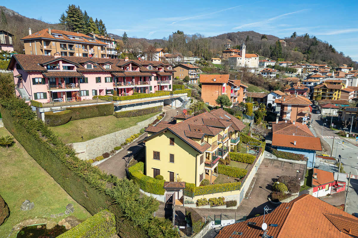 In pieno centro , a Colazza, la Residenza “Le Primule” realizzata nel 2003 ospita questo luminosissimo appartamento situato all’ultimo piano di una bella palazzina di soli due piani e caratterizzato da un ampio terrazzo coperto con vista panoramica su tutta la collina del Vergante.