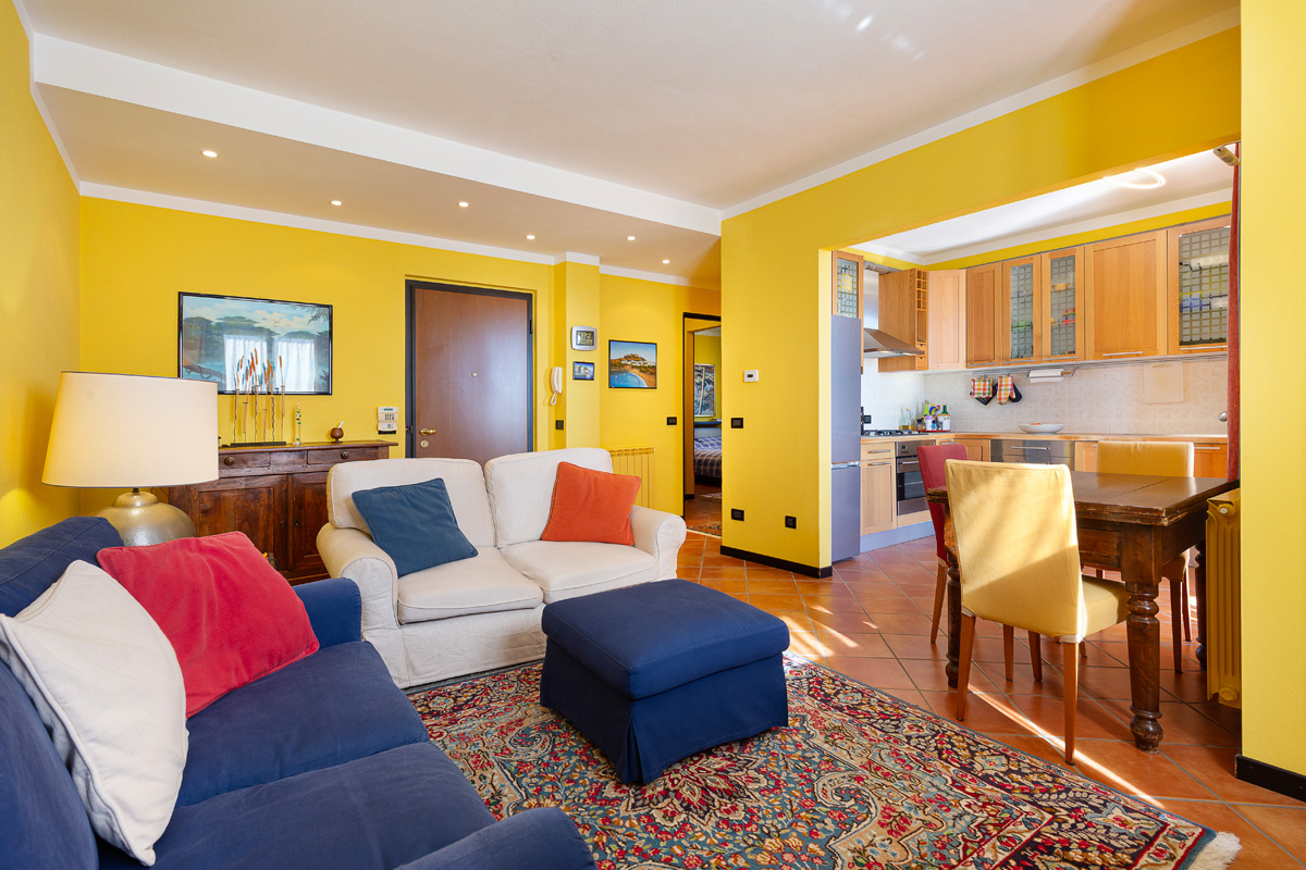 Disposto su una superficie di 88 mq., la proprietà ci accoglie in un luminoso soggiorno seguiti da una cucina ben inserita nella zona living e con accesso diretto al terrazzo; la zona notte comprende due camere da letto e doppi servizi.