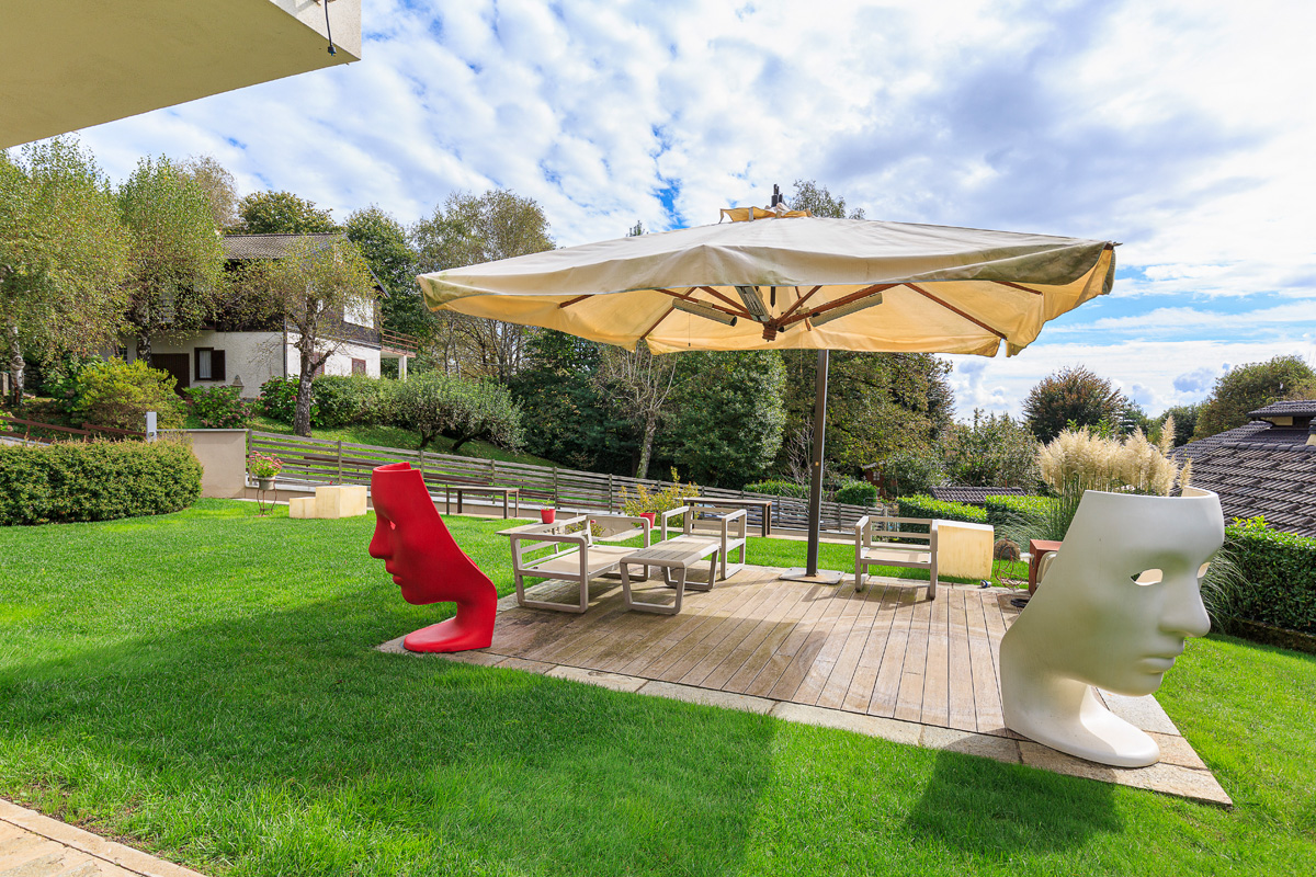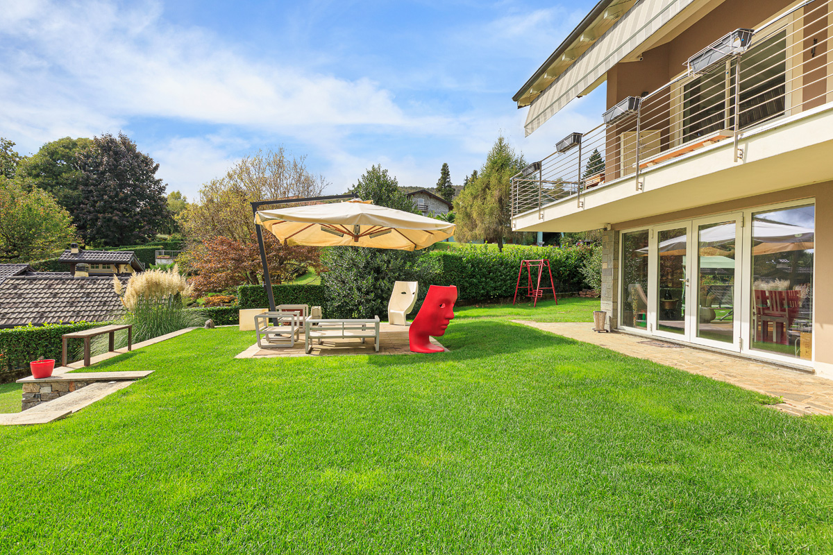 Un’architettura moderna che si inserisce perfettamente nel contesto residenziale del Poggio Alto, località sopra le prime colline del paese di Nebbiuno, che garantisce massima tranquillità e privacy nel verde più assoluto di giardini e parchi dei dintorni.