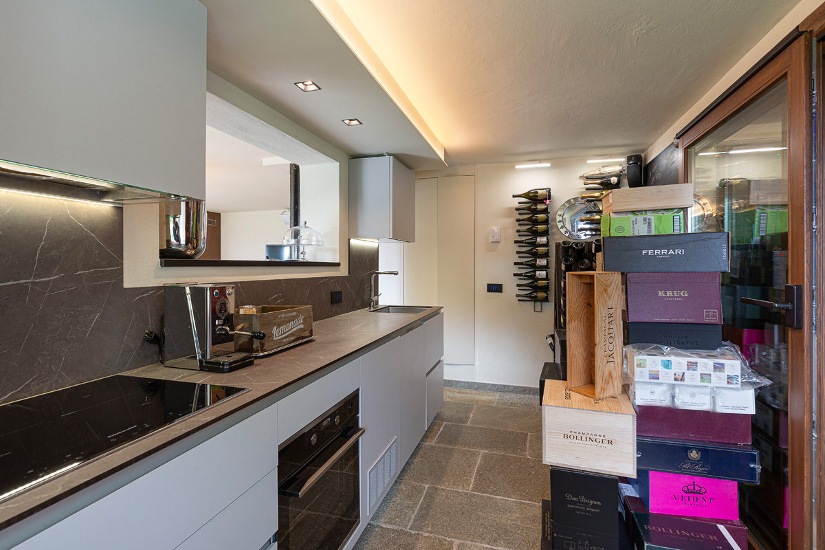 Una zona conviviale al piano terra , un’ambiente comodo e confortevole che si apre sul giardino , con annessa una cucina a vista di primarie marche, un bagno ed una preziosissima cantina climatizzata, opera esclusiva del proprietario , per gli appassionati di vini pregiati e per la conservazione di tutti gli alimenti (salumi, formaggi) che necessitano di particolari metodi di conservazione ( già dotata di batteria/generatore).