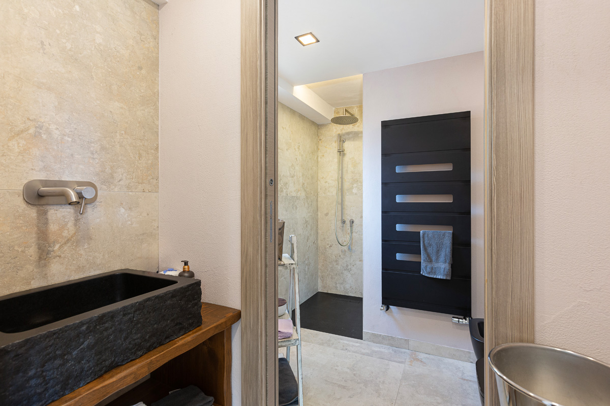 Ristrutturata radicalmente di recente , l’immobile si contraddistingue per le linee pulite ed essenziali. L’uso di materiali naturali come pietra “luserna”, parquet anticato in rovere del “Cadore” e tanti altri dettagli, e finiture di alto standing, valorizza il senso di calore e accoglienza degli ambienti.