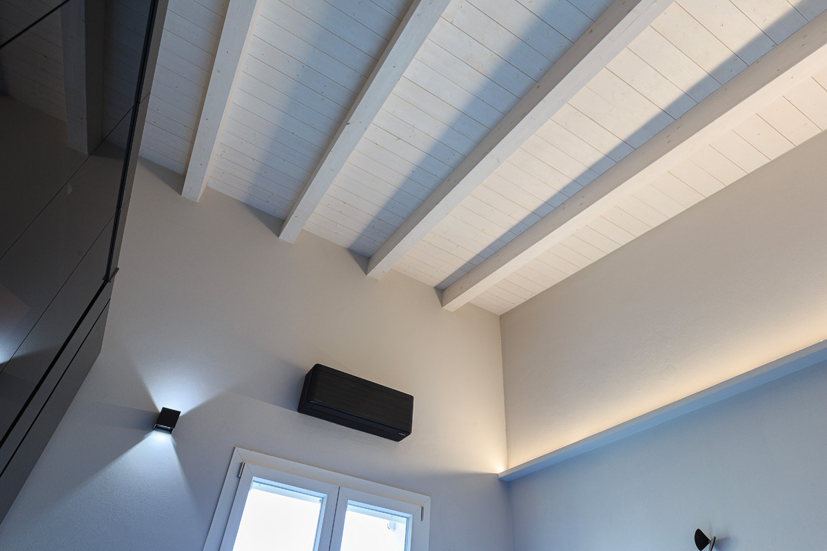 -Tetto a vista in legno nella zona notte